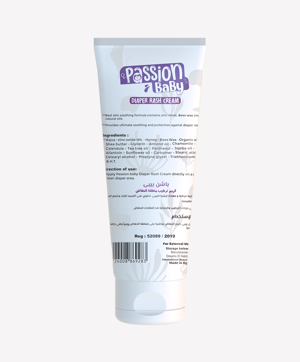 Clean and dry the diaper area thoroughly before application، and Apply a thin, even layer of Passion Baby Diaper Cream to the affected area. Use at every diaper change to help prevent and soothe diaper rash.